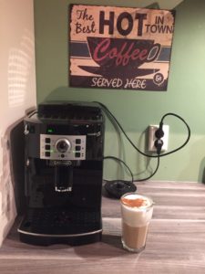 We hadden al een aantal jaren een bordje in de keuken hangen met ‘The best hot coffee in town’, maar nu klopt dat ook :-). We hebben een heus koffie-apparaat waar bonen in worden gemalen. Love it!